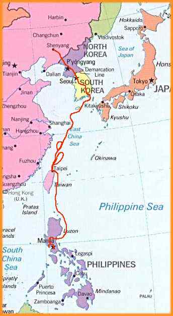going across the East China sea, heading north.